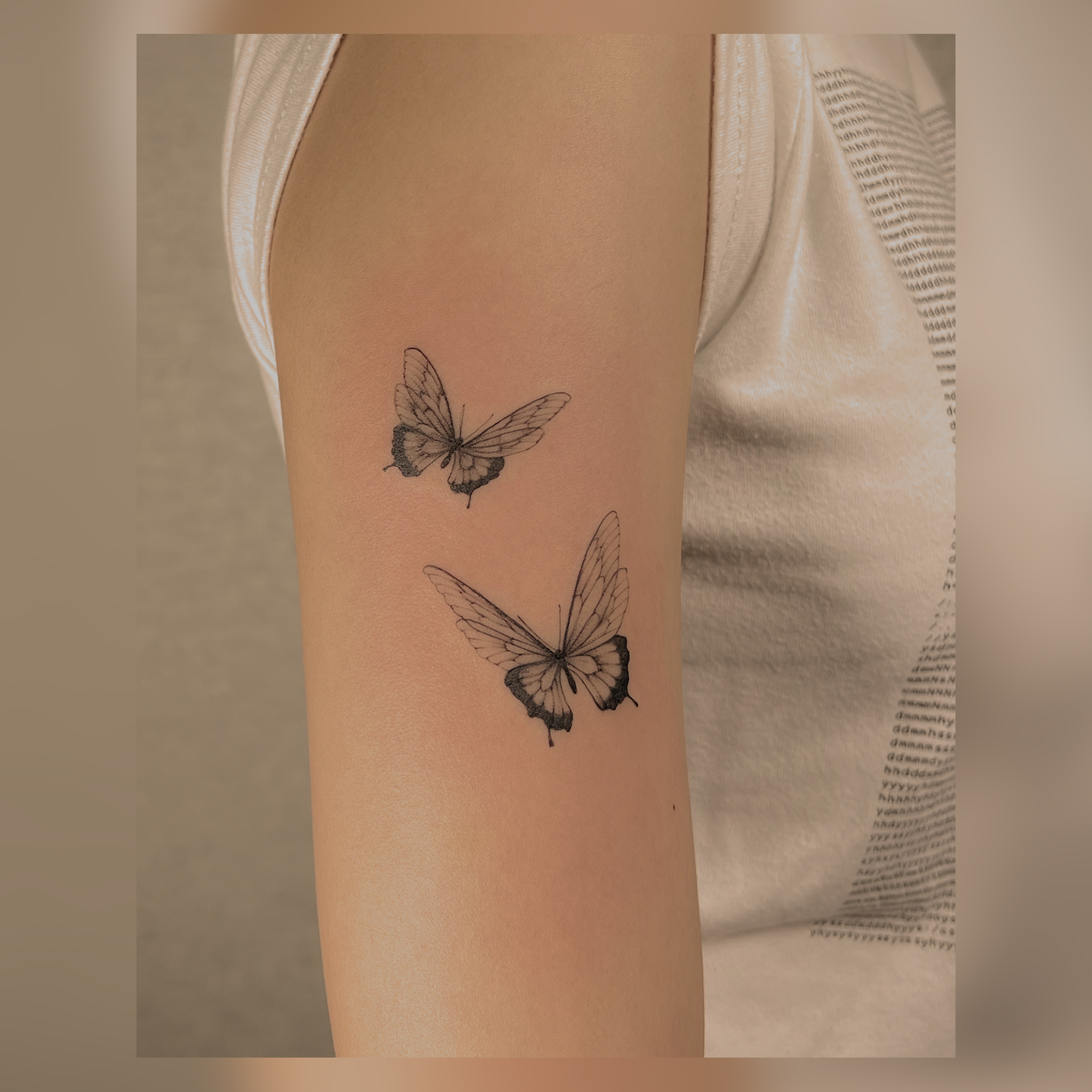 먼저 저는 톡톡으로 나비타투를 하고 싶다고 말해서 제가 갔을 때 도안들을 준비해 주셨더라고요 저는 컬러타투도 좋아하지만 깔끔하고 심플한 분위기를 더 좋아해서 원 컬러로 진행하기로 했어요 그전에 되게 규모가 크다고 느낀 점은 홍대점 말고도 부평점, 강서점, 건대점, 등 분점도 많은데 병원이랑 협업도 하기로 했다고 하더라고요 컨벤션 출전을 하면서 경험도 더 많이 쌓고 아카데미도 운영해서 타투에 대한 지식과 실력은 알아주는 곳이라 더 기대가 컸던 것 같아요~